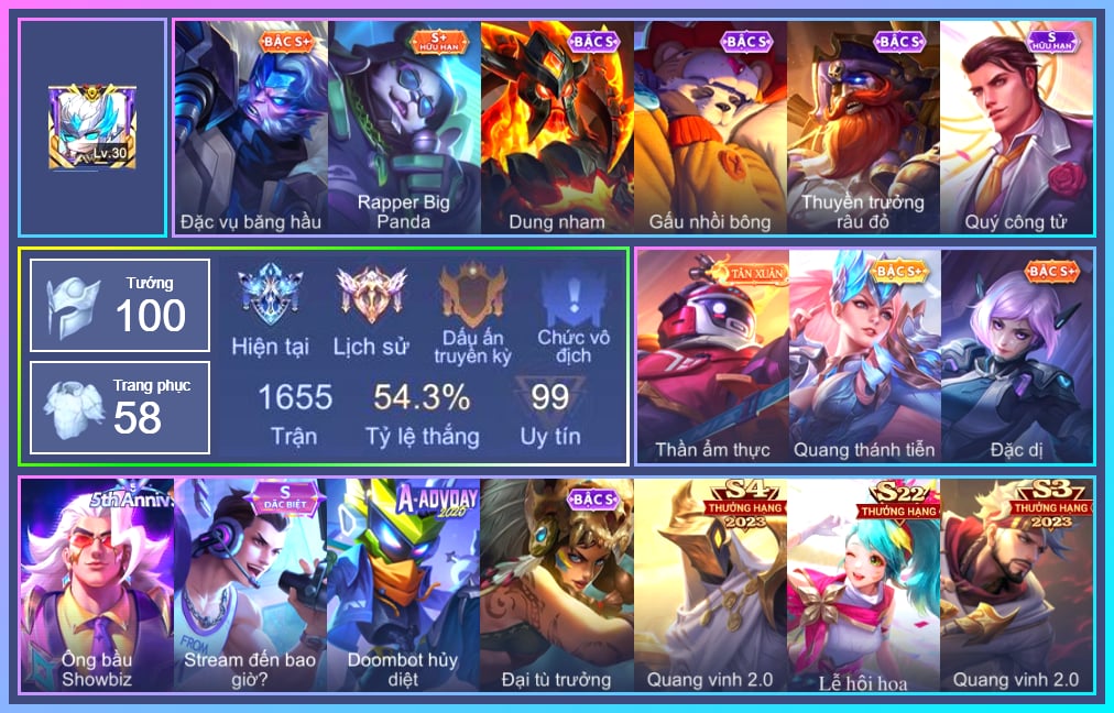 Valhein Hoàng tử Quạ, Valhein Vũ khí tối thượng, Valhein Đại Công Tước, Valhein Số 7 Thần Sầu, Valhein Thần tài, Valhein Xạ Thần, Valhein S-Quang Vinh, Triệu Vân Quý Công Tử, Triệu Vân Thần Tài, Krixi Công chúa Bướm, Krixi Cô Tiên Thỏ, Krixi Thuỷ Thủ, Krixi Nàng tiên nổi loạn, Taara Đại tù trưởng, Taara Hỏa Ngọc Nữ Đế, Mganga Hề cung đình, Mganga Pháp sư mèo, Mganga Doombot Hủy Diệt, Gildur phượt thủ, Gildur Đại gia học viện, Gildur Đại võ sư, Gildur Thuyền trưởng râu bạc, Yorn Cung thủ bóng đêm, Yorn Thế Tử Nguyệt Tộc, Yorn Soái ca bãi biển, Toro Đặc cảnh NYPD, Toro Bạch mao Ngưu, Toro Ngưu hải vương, Veera Goá Phụ, Veera Thiên nga đen, Veera Phù thủy Hội họa, Kahlii Siêu đầu bếp, Kahlii Tử điệp, Kahlii Rối Nước Thuỷ Đình, Mina Tiểu thư đoạt hồn, Mina Tiệc Bánh Kẹo, Mina Lưỡi hái hoàng kim, Mina Đào tạo siêu sao, Azzenka Quang Vinh 2.0, AzzenKa Giáng sinh An lành, Alice Nhà chiêm tinh, Alice Xứ sở thần tiên, Alice Dạ hội, Alice The Butterfly Mansion Girl, Natalya Quý Cô Thủy Tề, Ignis Hỏa Thuật Sư, Ignis Quang Vinh, Ignis Bắc băng vương, Ignis Nguyệt lão, Tulen Nhà Thám Hiểm, Tulen Phù Thủy Kiến Tạo, Tulen Đông êm đềm, Tulen Phó kỷ luật, Tulen Dạ hội, Capheny Hầu gái, Capheny S-Quang Vinh, Annette Nữ quản ga, Annette Nữ sinh trung học, Annette Băng kỳ lâm, Lindis Thám Tử Tư, Lindis Quang Vinh, Lindis Đồng phục Shihakusho, Wisp Hải Tặc Nhí, Wisp Ếch nhồi bông, Roxie Thám tử tập sự, Roxie Hầu gái, Roxie Cháy Phố, Roxie Lễ hội hoa, TeeMee Xiếc Cung Đình, Teemee Tay đua siêu tốc, Teemee Thịt xiên nướng, Điêu Thuyền Nữ Vương Anh Đào, Điêu Thuyền Nữ y tá, Điêu Thuyền Mèo công nghệ, Arduin, Arduin Quang Vinh 1, Arduin Tà linh hiệp sỹ, Arduin Organ cổ quái, Krizzix Crursed Corpse, Elsu Mafia, Elsu Xạ thủ tinh linh, Richter Dạ hội, Richter Cứu hộ, Veres Đạo tặc, Veres Thần thoại Hy Lạp, Veres Chị đại học đường, TelAnnas Cảnh Vệ Rừng, TelAnnas Giám thị thân thiện, TelAnnas Chung Tình Tiễn, Telannas Thánh nữ mật hội, Telannas Dạ hội, TelAnnas Quang Vinh, Tel Annas Jujutsu Sorcerer, Keera Y tá lạ, Keera Học viên Carano, Keera Thuỷ thủ, Keera Nghệ sĩ Graffiti, Keera Hồ điệp, Hayate Bạch ảnh, Hayate Bạch lang, Violet Nữ đặc cảnh, Violet Đặc Dị, Violet Tay Súng Siêu Phẩm, Violet Huy Chương Vàng, Max Hiệp Sĩ Nhí, Max Găng Tay Vàng, Max Quang Vinh, Max Thần thoại Hy Lạp, Max Chuyên gia đập hộp, Max Trà Chanh, Ryoma Thợ Săn Tiền Thưởng, Ryoma Đại Tướng Nguyệt Tộc, Ryoma Dạ hội, Ryoma Ailing Samurai, Grakk Thuyền Trưởng Râu Đỏ, Grakk Khô Lâu Đại Tướng, Grakk Chàng gấu tuyết, Grakk Màu cờ sắc áo, Grakk Thần ẩm thực, Jinna Đại Tư Tế, Jinna Hỏa nhãn ma vương, Elandorr Soái tặc, Elandorr Phi vụ thế kỷ, Elandorr Học viện Carano, Marja Linh Xà Tư Tế, Arthur Hoàng kim cốt, Arthur Lãnh chúa xương, Arthur Đặc cảnh băng lôi, Moren Anh thợ điện, Aleister Thiếu Niên Hắc Ám, Aleister Quỷ soái nguyệt tộc, Aleister Xứ sở thần tiên, Butterfly Xuân nữ ngổ ngáo, Butterfly Thủy thủ, Butterfly Teen Nữ Công Nghệ, Butterfly Nữ Quái Nổi Loạn, Butterfly Quận Chúa Đế Chế, Butterfly Gánh anh đến cùng, Butterfly Bình Minh Tận Thế, Zill Lốc Địa Ngục, Zill Dung nham, Zill Thần mộng mị, Stuart Trò đùa tử vong, Stuart Gã hề, Fennik Nhà thám hiểm, Fennik Đội đặc nhiệm, Fennik Tiệc Bánh Kẹo, Fennik Phi hành gia, Fennik Tay đua F1, Fennik Shipper Siêu thanh, Rouie Sứ giả vũ trụ, Rouie Quang Vinh, Yena Khuyên Bạc, Yena Hoạt náo viên, Yena Nữ hoàng thể thao, Yena Nữ cướp biển, Liliana Hồ Quý Phi, Liliana thần tượng âm nhạc, Liliana Thuỷ thủ hồ ly, Ormarr Cựu chiến binh, Omen Sĩ Quan Viễn Chinh, Omen Thuyền trưởng hải tặc, Allain Lân sư Vũ thần, Preyta Không Tặc, Preyta Phi cơ F1, Raz Đại tù trưởng, Raz Băng Quyền Quán Quân, Raz Saitama Cosplay, Raz MC Võ đài, Darcy Nam tước, Darcy Pháp sư hỏa long, Rourke Pháo Thủ Tuộc Neo, Rourke Cuồng tặc, Nakroth BBoy công nghệ, Nakroth Producer Tia chớp, Nakroth Siêu Việt 1, Zephys Oán linh, Zephys Phi thương, Zephys Tư lệnh viễn chinh, Zephys Inosuke Hashibira, Zephys Đầu bếp Sashimi, Laville Tay đua đường phố, Laville Tay súng vô địch, Laville Kim quy thần vương, Laville Thám tử học đường, Slimz Lẩu chua cay, Slimz Sứ giả Thiên giới, Slimz Siêu Cấp Tối Thượng, Ilumia Nữ Chúa Tuyết, Ilumia Thiên nữ áo dài, Ilumia Diva nổi loạn, Ilumia Ngược dòng thời gian, Ilumia Quý cô Nhà hát, Maloch Ác Ma Địa Ngục, Maloch Ác nhân vô tuyến, Maloch Đại ca Mukbang, Dirak Quý tộc, Dirak Ông bầu Showbiz, Dirak Đường chủ yêu giới, Airi Thích Khách, Airi Ninja Xanh Lá, Airi Kiemono, Airi Đặc công tử điệp, Lorion Chiến giáp hắc ám, Lauriel Đọa Lạc Thiên Sứ, Lauriel Lạc thần, Lauriel Nữ vương học đường 2, Zuka Đại Phú Ông, Zuka Giáo Sư Sừng Sỏ, Zuka Phát Tài, Zuka Đầu bếp hoàng cung, Zuka Xích Hùng Chiến Giáp, Ata Quang vinh, Ata Mèo đi mưa, Ishar Giấc Mơ Ngọt Ngào, Thorne Cận vệ hoàng gia, Thorne Giả kim thuật sư, Murad Thợ Săn Tiền Thưởng, Murad M-TP Thần Tượng Học Đường, Murad Đồ thần đao, Murad Siêu việt, Murad Điệp viên Anubis, Murad S-Quang Vinh, Omega Người máy xanh, Omega Cỗ Máy Siêu Tốc, Omega Hộ vệ ba bíc